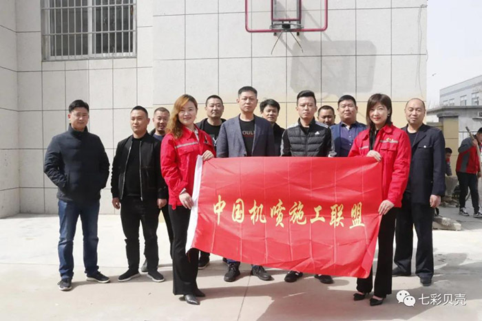 培訓結束后,七彩貝殼香港集團有限公司總經理郭成為濰坊佳多麗建設工程配套有限公司進行授牌,授予佳多麗公司“中國機噴施工聯盟培訓基地”。
